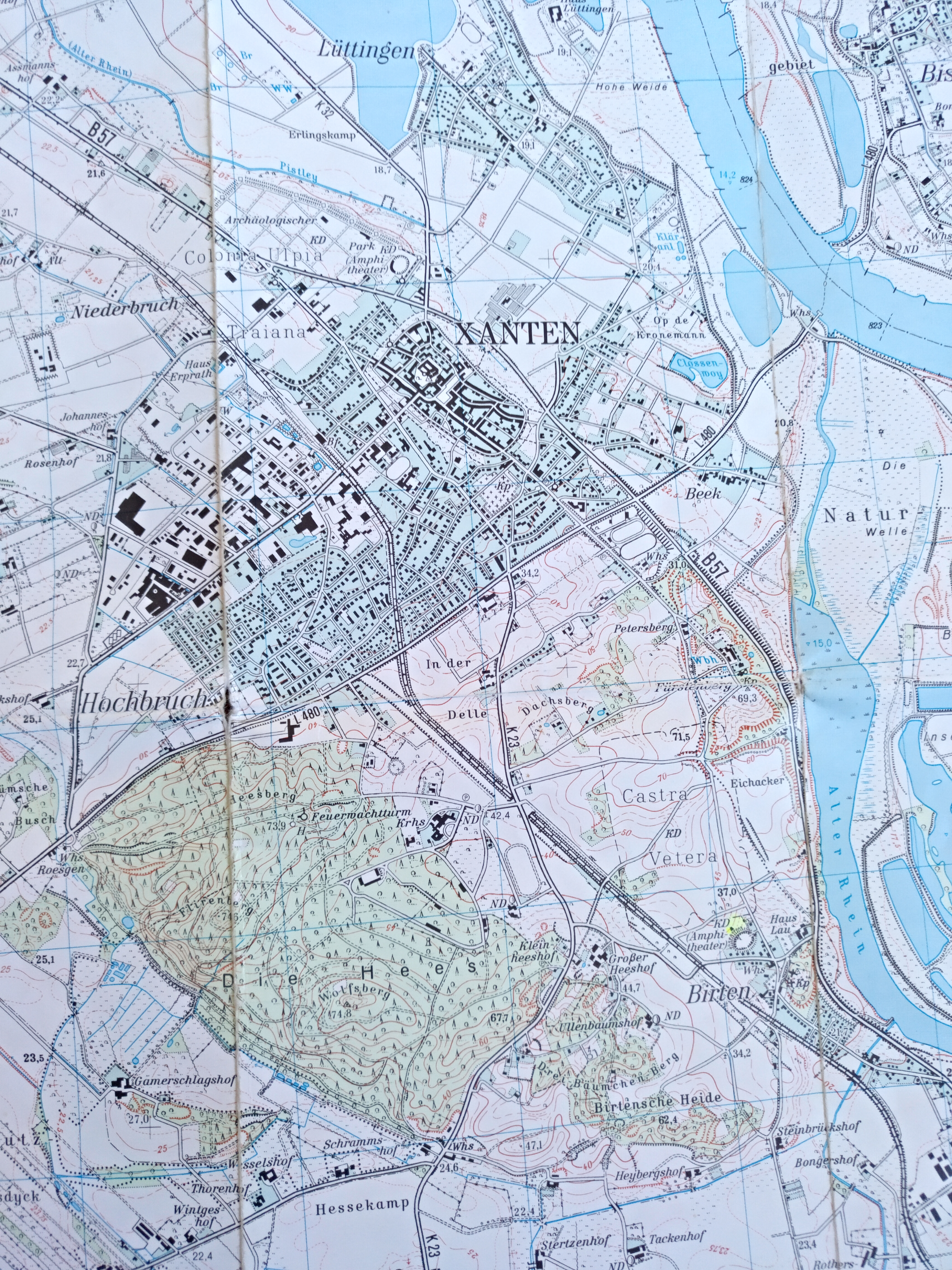 Photo of older German Topographic Map DTK25, No. 4304, Xanten, 14th edition, 1998