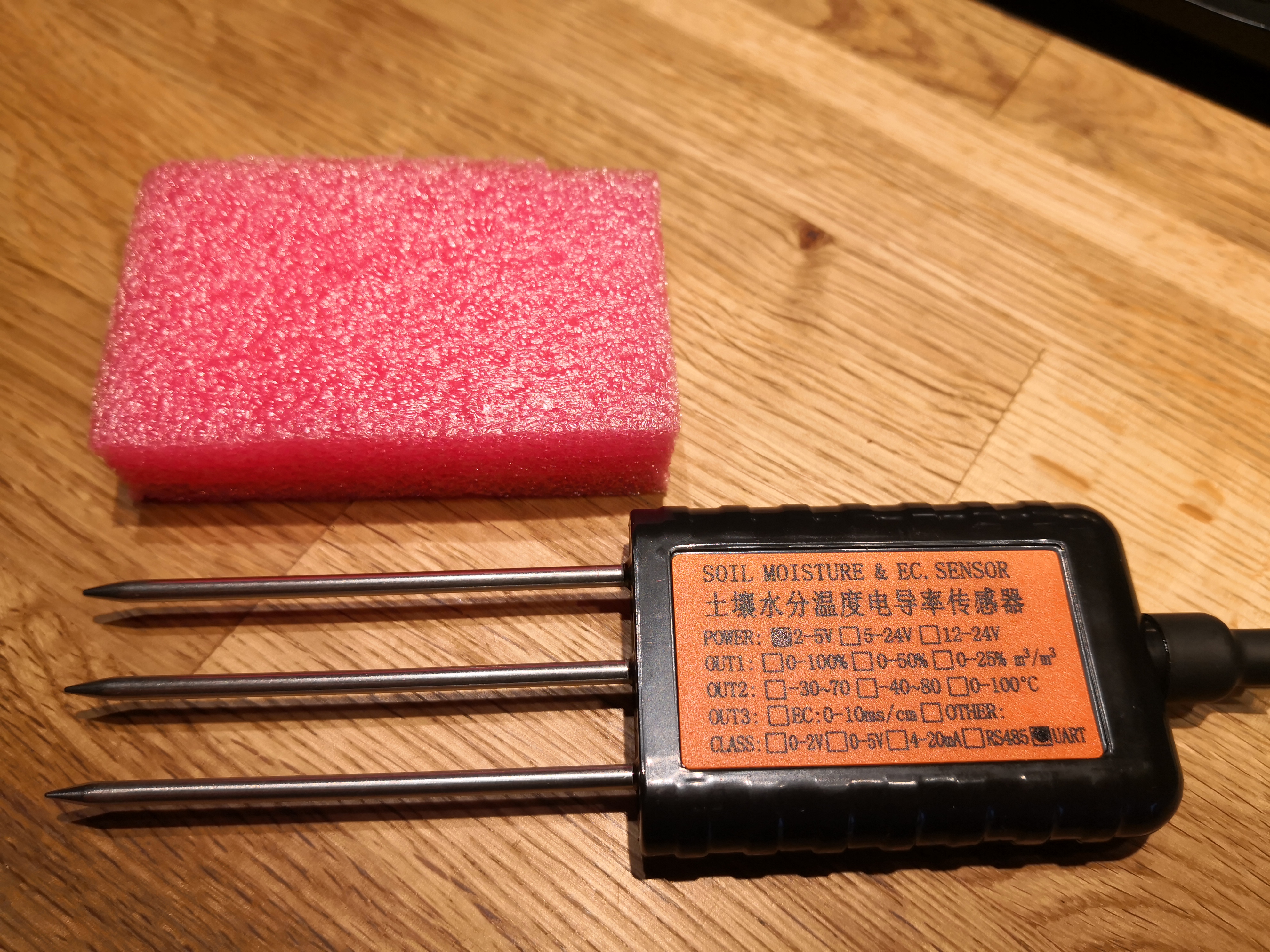 The LSE01 sensor kit consists of a LSN50 v2 LoRaWAN node plus a soil sensor providing soil moisture, soil temperature as well as soil electrical conductivity. Unfortunately the LSE01 software to communicate with the soil sensor as well as the soil sensor itself are closed source. It is totally unclear how the sensor works. It is not specified and not even the brand is known.