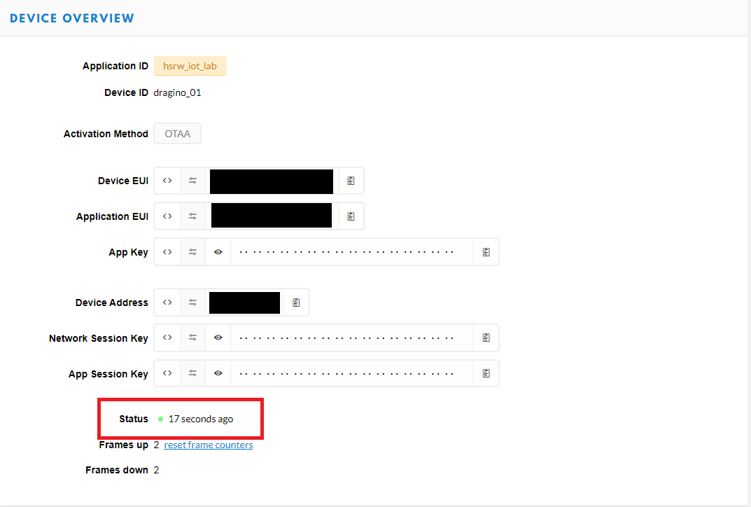 Any LoRaWAN device has to be registered (“paired”) with a TTN application. Preferably over the air activation (OTAA) is used. In the case of OTAA the following information has to be transferred from the preset LoRaWAN device to the TTN application.